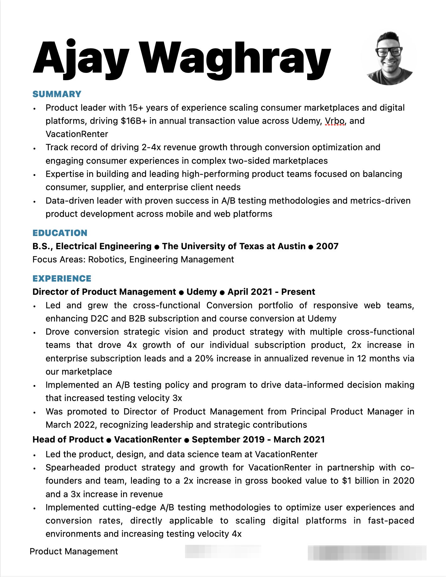 A while ago, I build a resume coach on top of Anthropic’s Claude model that embodies all of the resume feedback I usually give product managers when they send me a resume to review. It’s like a feisty CPO reviewing his 1000th resume and giving you honest, direct feedback.