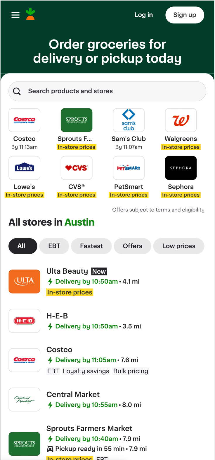 Here’s an example that I’ve been using on mobile of a great site experience, Instacart: